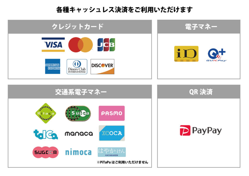 QUICPay・iD・交通系ICカード(PiTaPaを除く)・PayPay